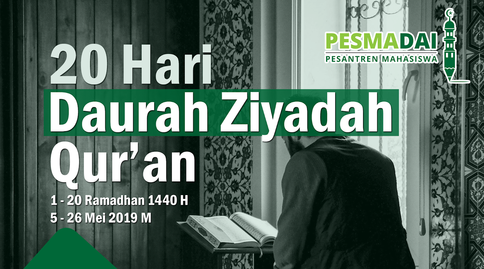 Alhamdulillah, kini Pesantren Mahasiswa Dai telah mengadakan Daurah Quran yang kedua kalinya. Untuk memberikan bimbingan hafalan Quran secara intensif selama bulan Ramadhan dimulai dari 1 – 20 Ramadhan 1440 H. Yang InsyaAllah akan dibimbing dan diasuh oleh Ustadz Muflih Habibullah yang merupakan Alumnus dari Ma’had Aly Ar-Rayah sekaligus Mudir Ma’had Pesmadai Depok.